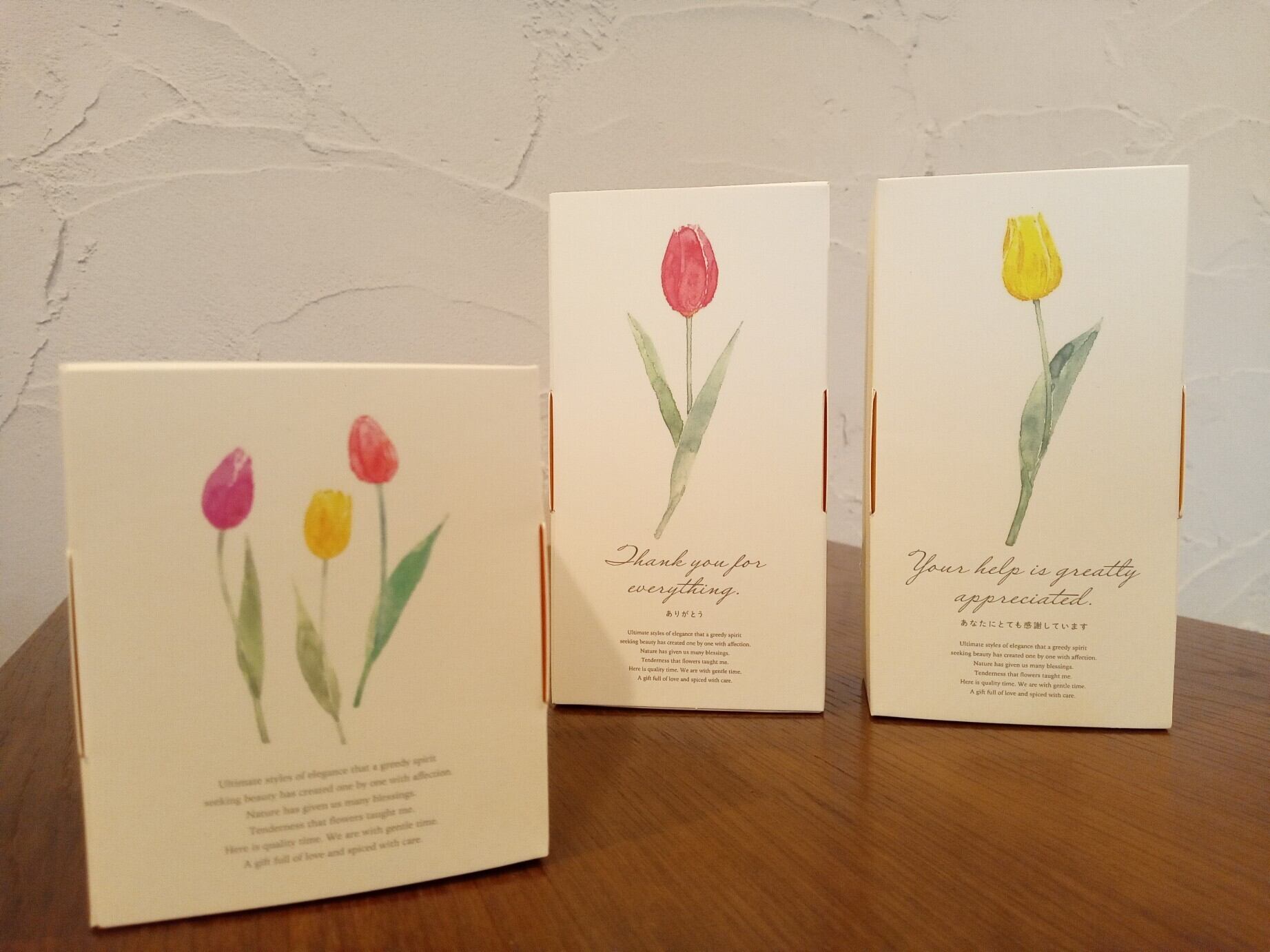 こちらは「あなたにとても感謝しています」の黄色いチューリップを表面にしたギフト。